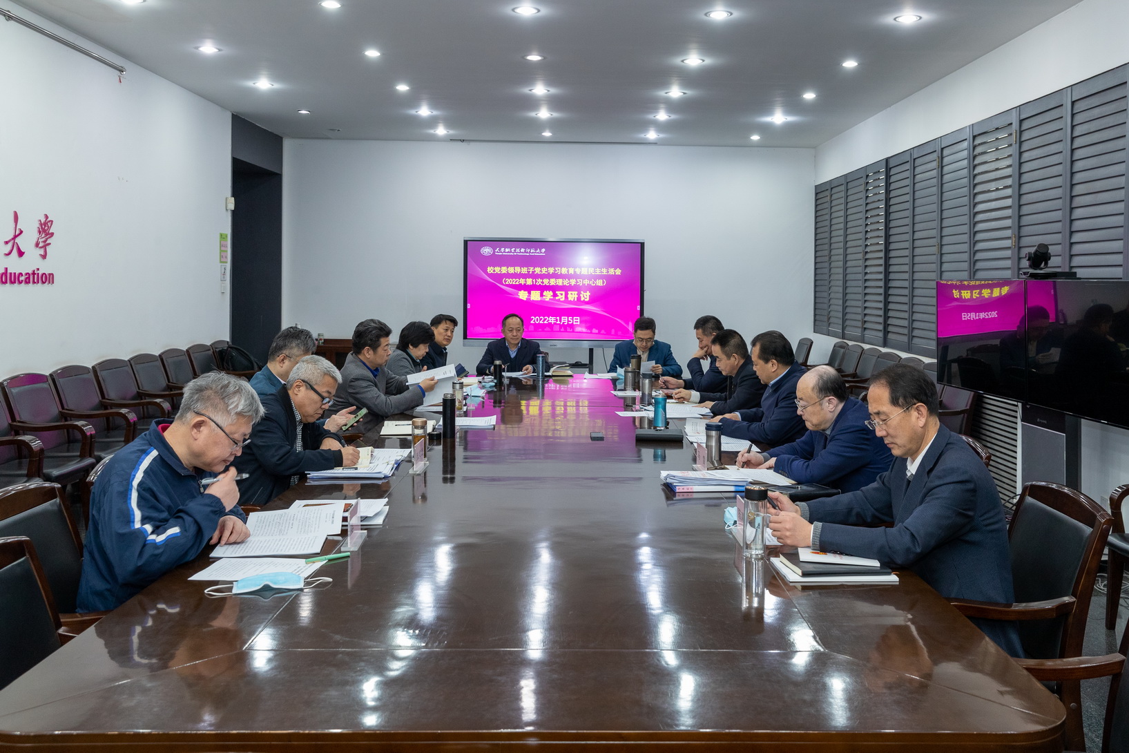 今日校党委召启党史进修教导博题平易近主死活会进修研究暨2022年第1次校党委表面进修焦点组散中进修研究会,校党委表面进修中央构成员列席,校党委布告弛金刚刚同道主办聚会并谈话。