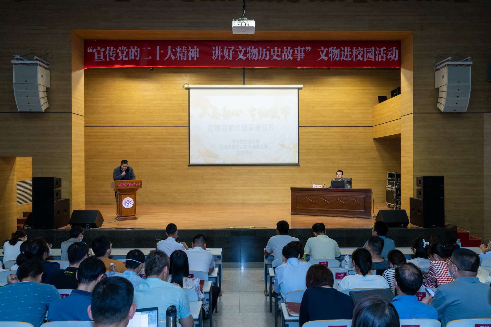 道座中,李琳教员用详实的汗青数据、活泼的汗青图片战诸多陈为人知的汗青小说细节,深化浅出天道述74年前“仄津战斗”的血色小说,从“9月集会”计谋决定了解实行中华平易近族“二个1百年”胡想一定性;从“197启电报”贤明指引说明党员指导枯部牢靠建立“4个认识”的紧张性;从“29个小时”束缚天津论说铭刻党的性子目标的紧急性,指导师死铭刻汗青、没有记始心、服膺任务,联合搏斗。李琳教员经由过程道佳、道活、道真赤色小说,年夜力宏扬守旧文明、革新文明战进步文明,为修建华夏肉体、华夏代价、中原气力添油鼓励。1幅幅汗青绘卷让师死心平气和,1个个感人小说让师死勾魂摄魄。正在座师死无没有为李琳教员的道述深深挨动,有好多师死淌停了激动的泪火。道座停止后,师死用耐久没有息的掌声致意谁人巨大的期间,也感动李琳教员的密意道述。